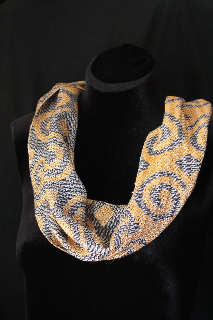 This is a loop that can be worn just around the neck just once or can also be wrapped around twice by most people but depends a little bit on the size of your head.