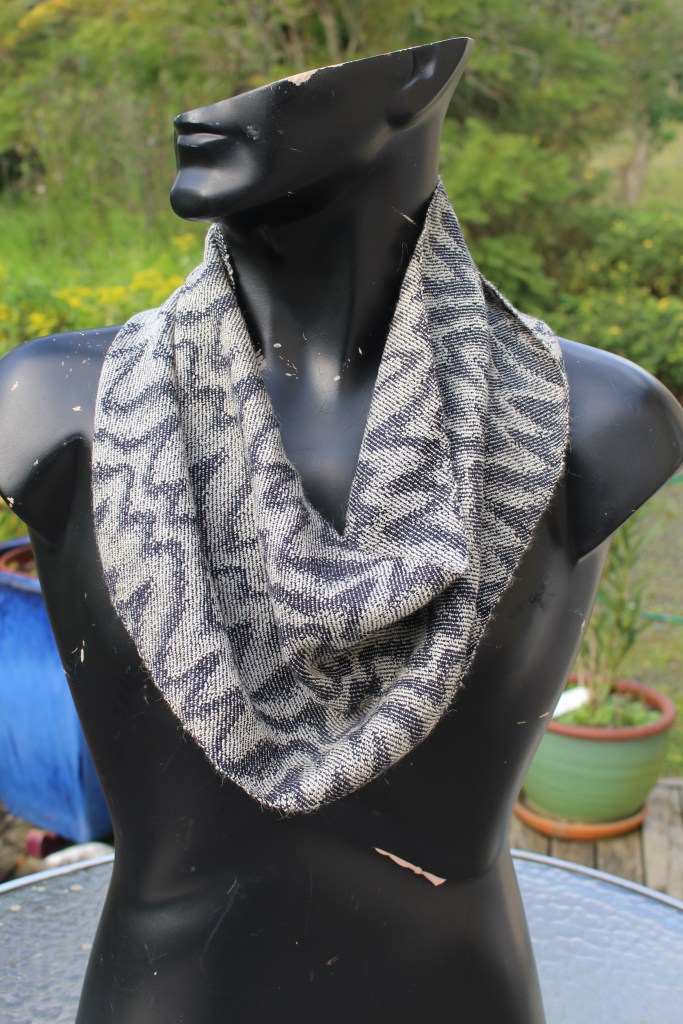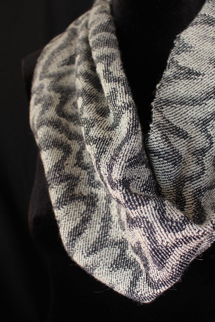 The naming of this cowl which is sewn into a loop with a twist comes from the pattern I designed for this which reminded me of a meandering river.