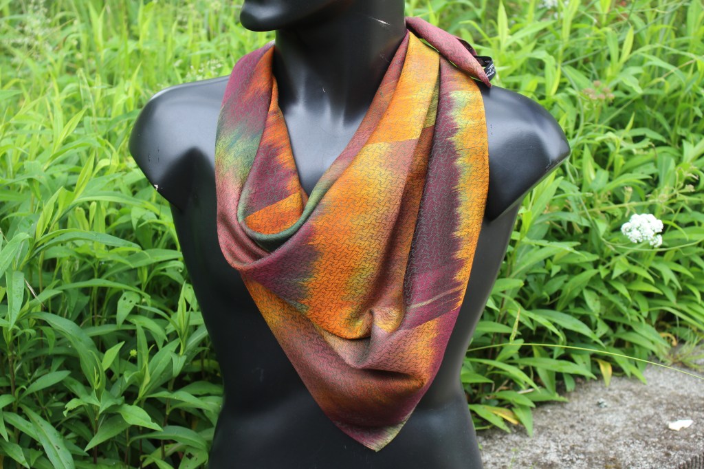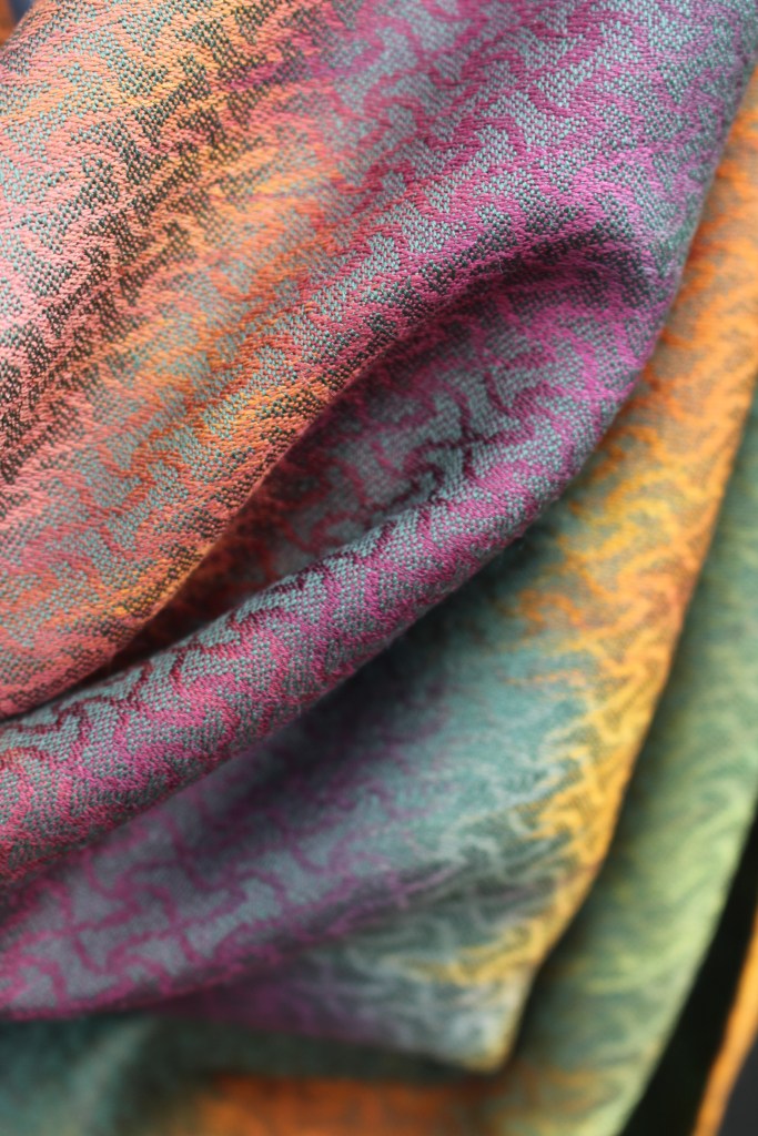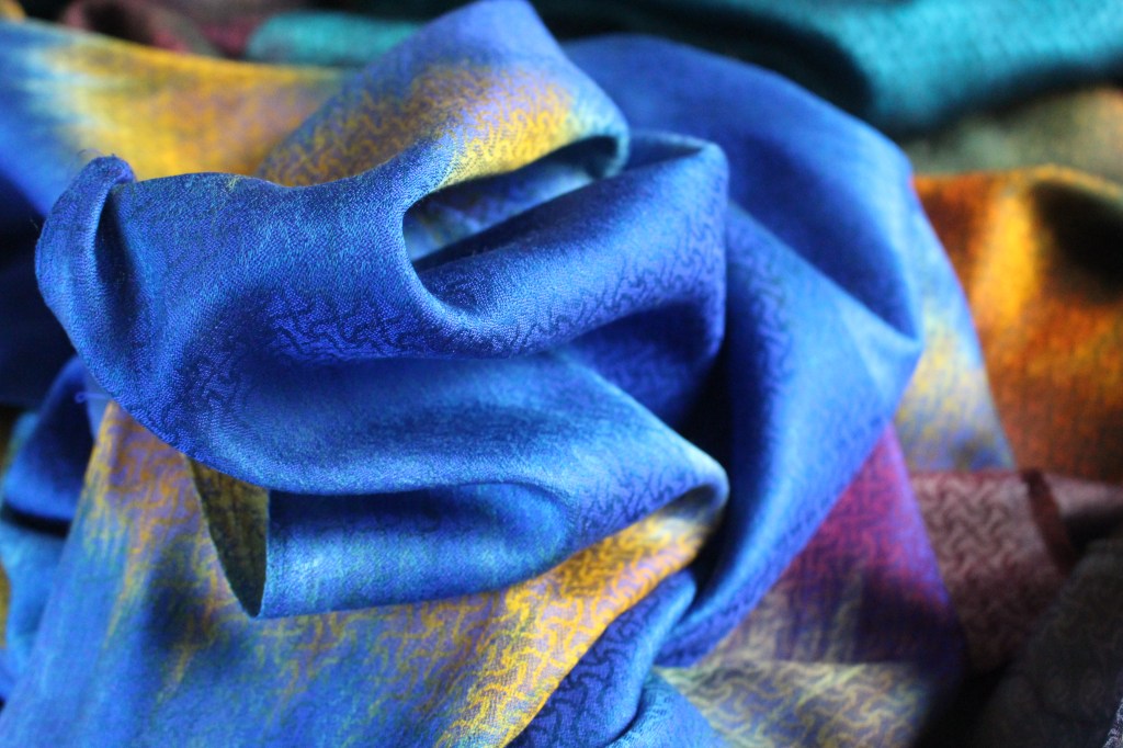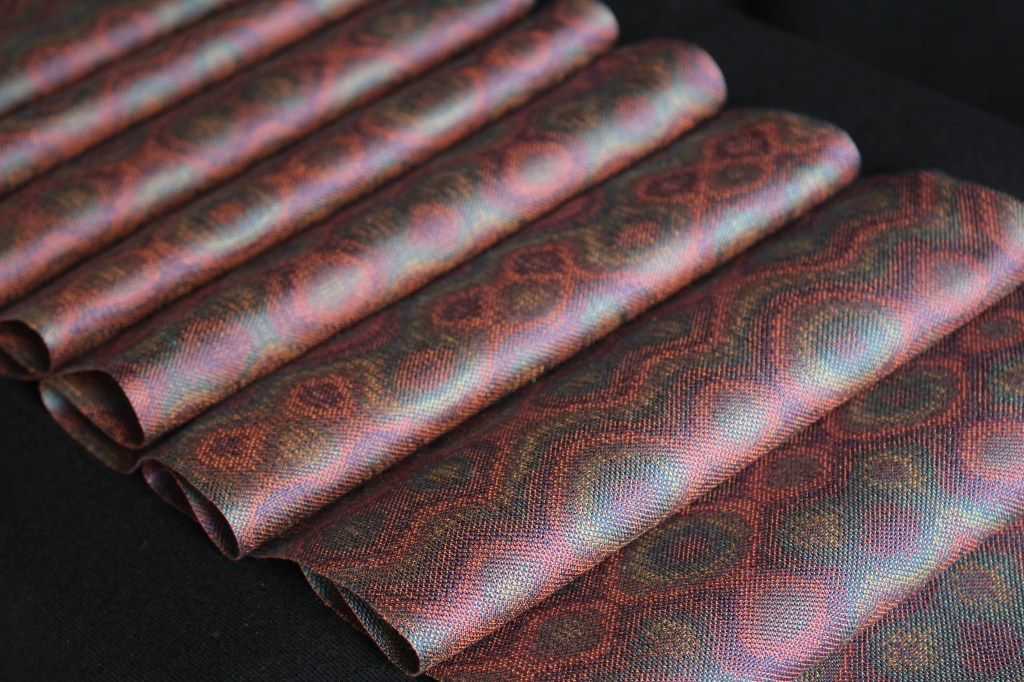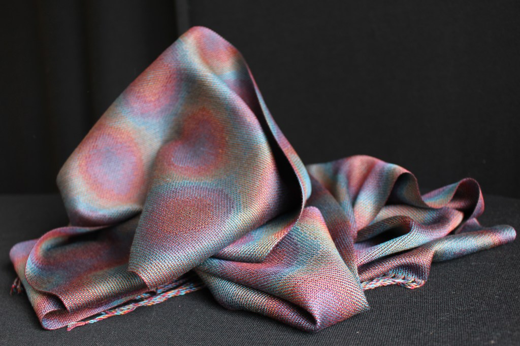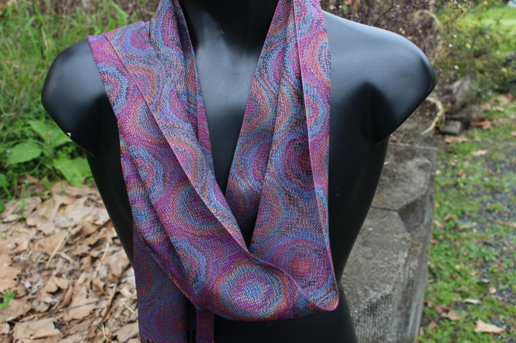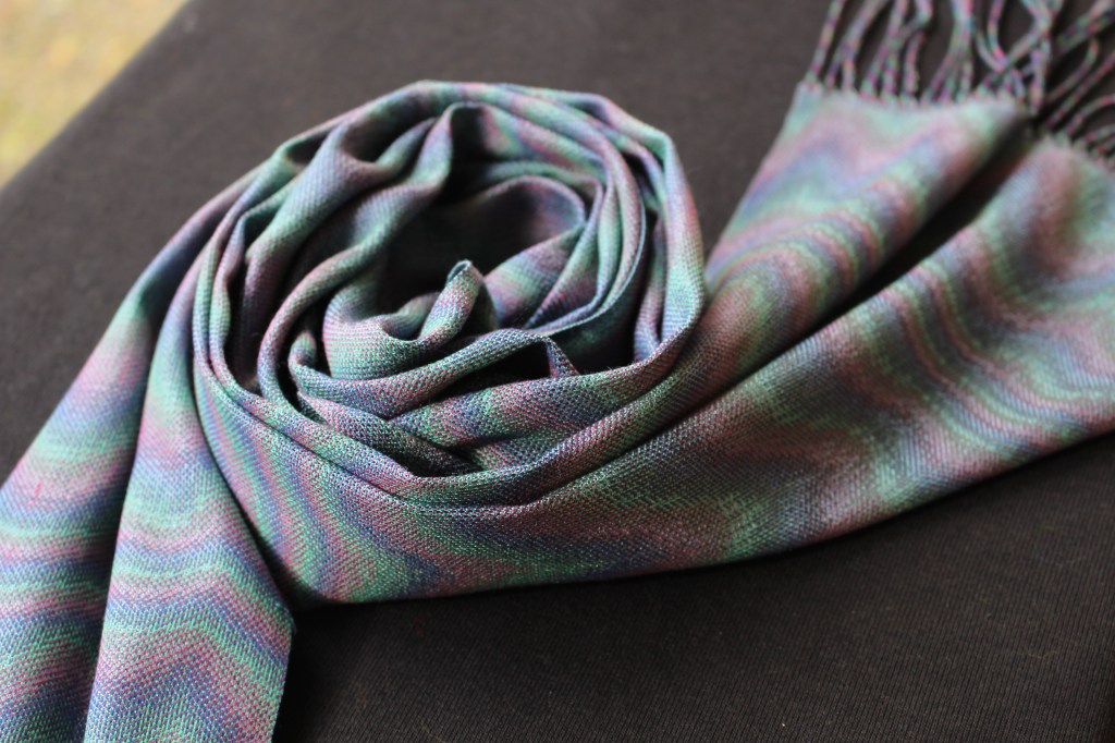 These are some of the fine silk scarves I wove in the past. I do love thin, very drapable silk scarves – these are all using either 60/2 or 140/2 silk in the warp and finer usually for weft.